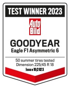 Německý motoristický časopis Auto BiId na začátku března zveřejnil výsledky svého nejnovějšího testu letních pneumatik. Mezi celkem padesáti různými pneumatikami rozměru 225/45 R 18 přesvědčivě zvítězily pneumatiky Goodyear Eagle F1 Asymmetric 6, které si vedle celkového prvenství z testu odnesly i titul za nejlepší ekologické parametry „Eco-Meister“. Na rozdíl od všech ostatních pneumatik u nich neobjevil vůbec žádné slabé stránky!